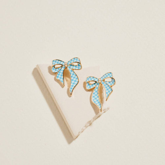 Easter Checkered Enamel Bow Ribbon Post Earrings